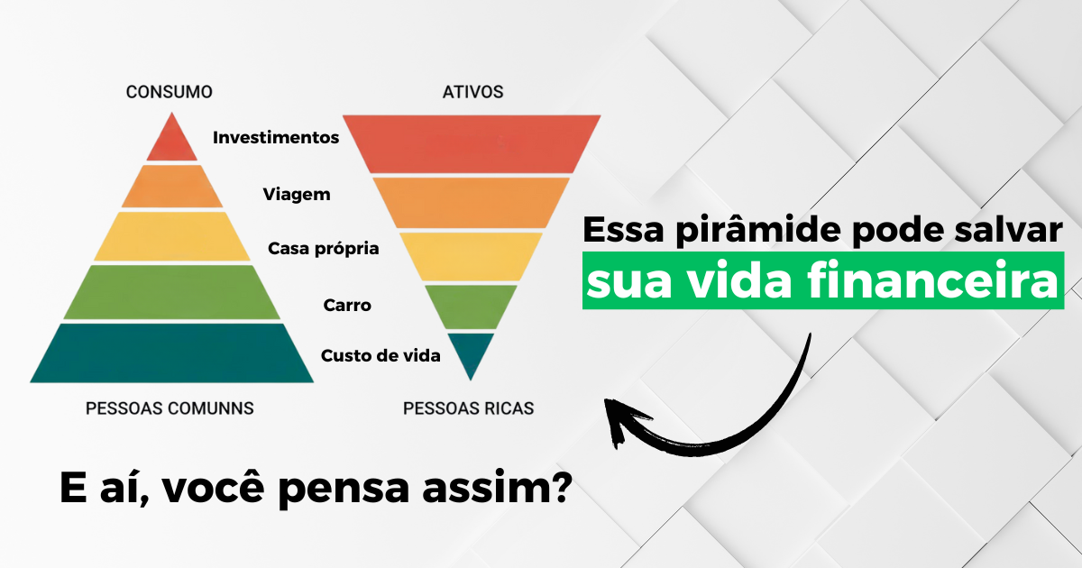 Já as pessoas ricas pensam diferente. Elas invertem a pirâmide. Antes de consumir, constroem ativos.